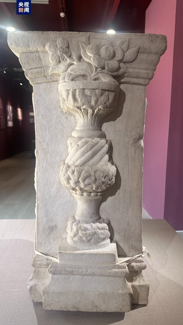 此次回归的石柱共7件,均为汉白玉材质,通高约80~92cm,立面有雕花造型,品相较好,推测均来自西洋楼遗址区。这些石柱正面纹饰以西式番花、贝壳纹等西洋雕花为主,侧面花瓶内花束则以具有吉祥寓意的牡丹、玉兰、荷花、菊花等中国传统花卉为主,圭角卷云纹、开窗的海棠线雕刻方式等亦与中国古建望柱、栏板相同,体现了中西合璧的文化内涵。