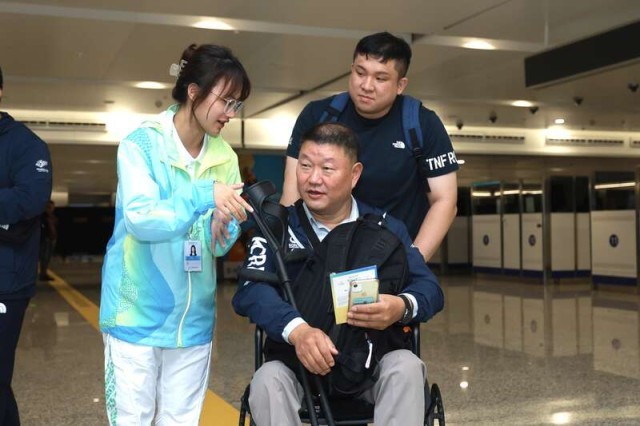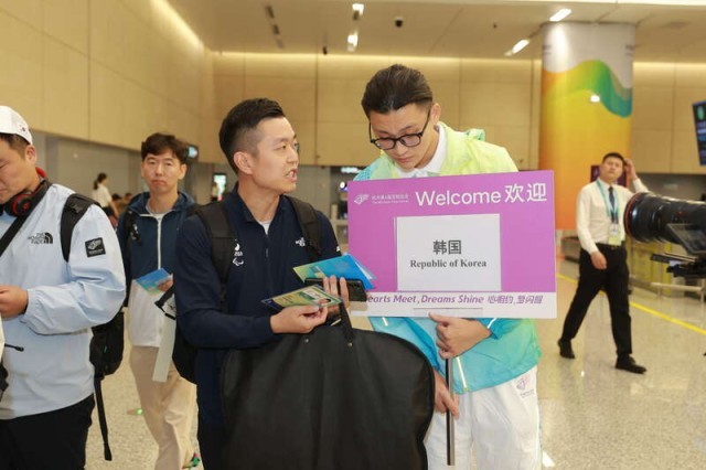 中国青年报客户端杭州10月14日电(中青报·中青网见习记者贾骥业 记者蒋雨彤)今天下午,随着载有11名韩国体育代表团成员的CA140航班落地杭州机场,杭州亚残运会抵离服务全面启动。代表团成员通过到达流线上的“亚残运会专用通道”,乘坐经改装的无障碍交通班车,由机场进入城市,开启竞赛之旅。