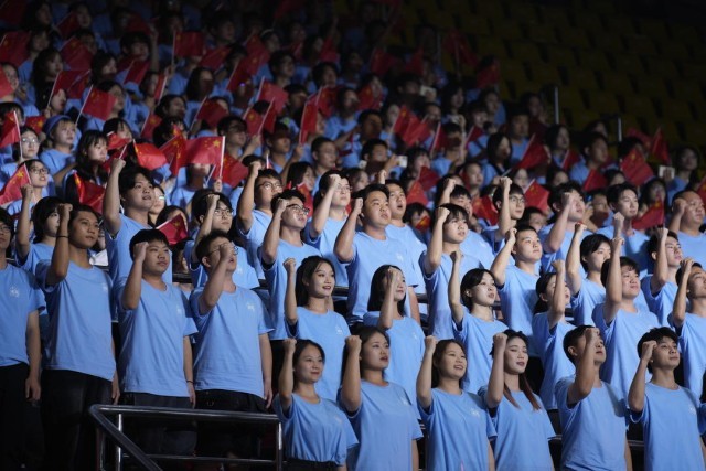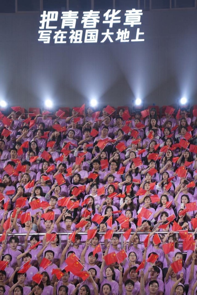 “我要把美好的青春献给你,我的母亲,我的祖国。”10月14日晚,四川大学体育馆,“把青春华章写在祖国大地上”大思政课网络主题宣传和互动引导活动开始前几分钟,暖场视频播放,现场很快变成了《我爱你中国》大合唱,歌声嘹亮。