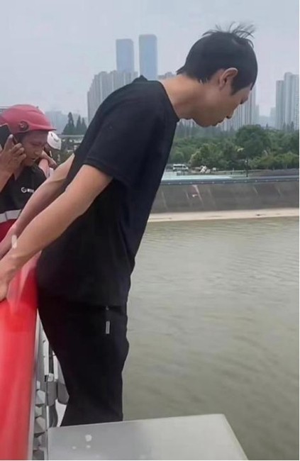 彭清林翻过大桥围栏,准备跳水救人。受访者供图