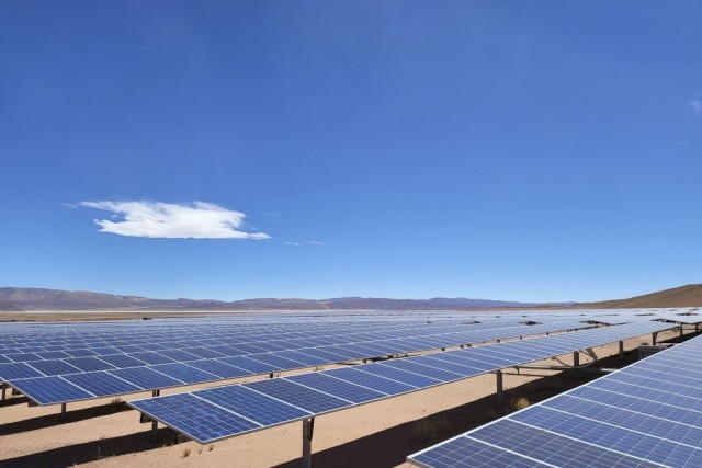 这是2023年9月6日在阿根廷胡胡伊省高查瑞光伏电站拍摄的光伏板。 新华社发(上海电建阿根廷高查瑞300兆瓦光伏发电项目项目部供图)