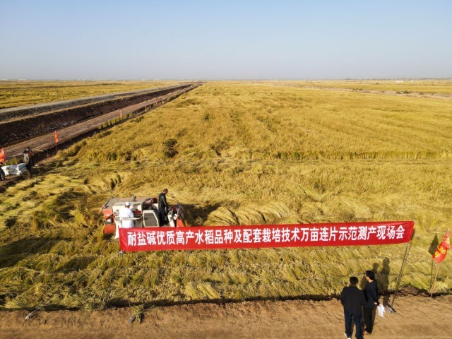 国家耐盐碱水稻技术创新中心西北中心2021年由科技部批复成立,已审定多类型耐盐碱水稻新品种12个,此次测产配套推广耐盐碱水稻丰产栽培技术,形成以耐盐碱水稻品种为核心,集成生物修复、节灌控盐、调理改土、栽培调控等关键技术措施配套的标准化方案。