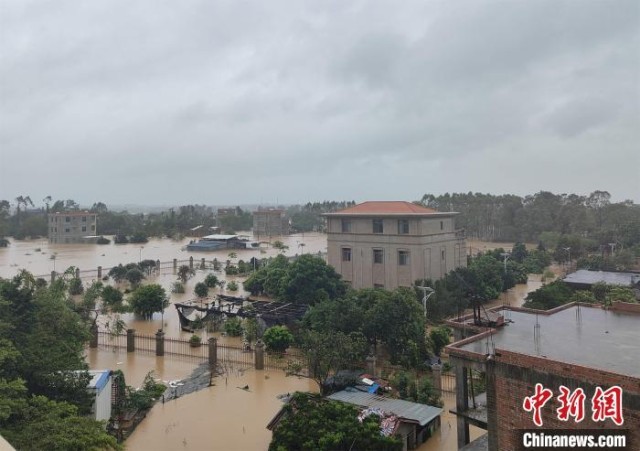图为北海市合浦县白沙镇村庄被淹。万家杰 摄