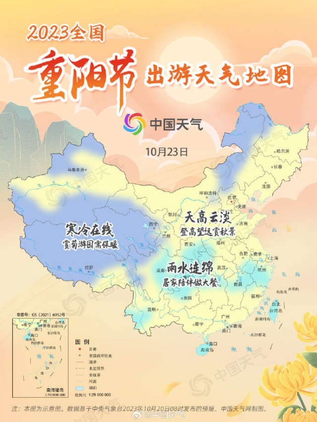 “遥知兄弟登高处,遍插茱萸少一人。”下周一(10月23日)就是重阳节了。自古以来,重阳节就有登高望远、吃重阳糕、赏菊等习俗。这周末相信有不少人会陪伴家中长辈过节,各地天气如何?适合什么样的活动?中国天气特别推出2023重阳节出游天气地图,快来看看哪里适合登高赏秋。