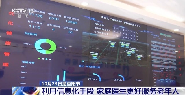 目前北京市社区卫生服务机构65岁及以上老年人签约242万人,为60岁以上老年人建立健康档案418万份。在北京马家堡社区卫生服务中心,一进门就有一块醒目的电子大屏,上面实时显示着签约重点人群的健康监测情况。