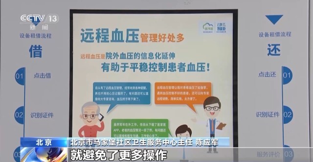 北京市马家堡社区卫生服务中心主任 陈应军:你看这上面有不同颜色,代表危险程度不一样,红色预警是最危险的状态,所以我们的平台有一个自动预警功能。这个血压计有自动上传功能,正常量就行,测量完了数据自动上传,避免了更多操作。