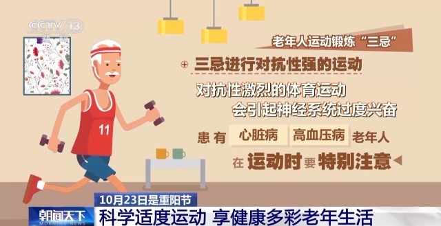 三忌进行对抗性强的运动。对抗性激烈的体育运动会引起神经系统过度兴奋,患有心脏病和高血压病的老年人,在运动时要特别注意。