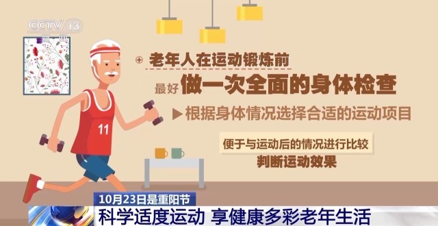 老年人在运动锻炼前最好做一次全面的身体检查,然后根据身体情况选择合适的运动项目。同时,也便于与运动后的情况进行比较,判断运动效果。如果每年体检,无基础疾病,也可以自己对身体机能进行简单测试。如连续下蹲10—20次,或原地跑步15秒,看是否有心悸、气促、胸闷不适等症状,如果没有可开始进行体育锻炼。