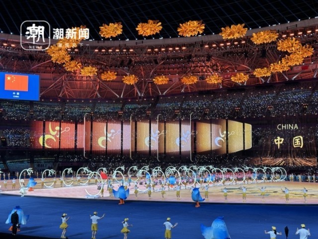 在这金桂飘香的季节,“金桂之花”也在大莲花中尽情绽放,从“金桂之花”到“金桂花冠”,再到“金桂之树”,是对宾客的欢迎,也有祝愿运动员们在赛场上一朝折桂的美好寓意。而当“金桂之光”释放出来,热爱与拼搏,梦想与荣耀,也都得以升华。全场飘着金桂花香,让人在感受这份美好之后,依然可以“回味无穷”。