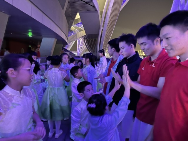 让她欣喜的是,从台州来到杭州后,参与开幕式联排的孩子们表现都非常出色,他们保持着孩童最天真质朴的状态,会热情地和其他演职人员打招呼,会主动教他人手语,也和同台演唱的其他孩子建立了深厚的友谊。