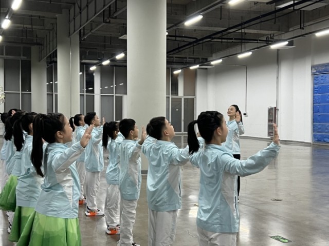 在开幕式联排前的43天集中训练里,他们把大部分时间都花在了手语动作上。在跟着“手语姐姐”牢记动作后,一个姿势伸多远,一个角度需要打多大,都需要孩子们严格做到位。所以,即便在没有集训的日子里,他们也会通过“群打卡”的方式上传训练视频,“小朋友哪个动作没做好,就定点保持5分钟,然后打卡拍照,老师们也会在线上纠正动作。”