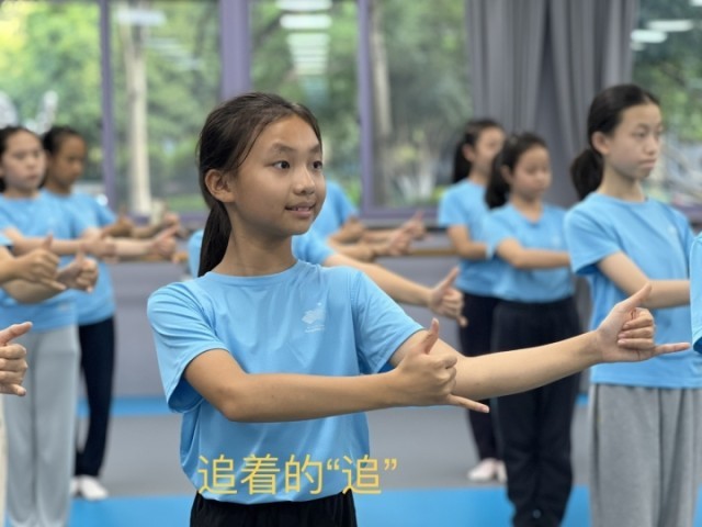 因为39名听障儿童年龄差距较大,最小的才5周岁,刚上幼儿园中班,最大的已是12周岁,且每个人情况都不一样,所以集训过程中,领队老师和专业老师要因材施教:大龄孩子去教弟弟妹妹,领队老师一对一给进度慢的补补课,遇上搭配节奏后复杂的动作,老师们还把它编成了儿歌。“可以说是用尽了教学方法,”潘秀秀表示,是孩子和老师双向配合的结果,才有这次舞台的呈现。