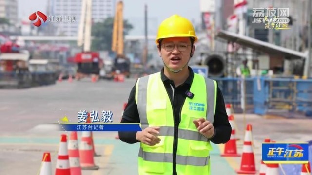 江苏台记者姜弘毅:在印尼第二条地铁线路的建设现场,放眼望去,可以看到这个施工现场有许多机械“螳螂们”正在热火朝天地工作。