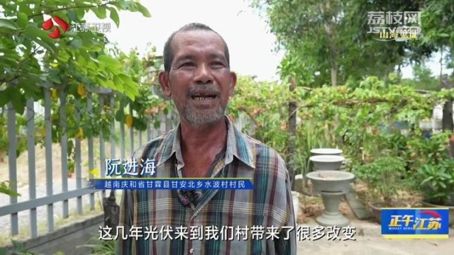 越南庆和省甘霖县甘安北乡水波村村民阮进海告诉记者,这几年光伏来到村里,带来了很多改变,比如周围的人们有了更多工作的机会。以前这里是缺电的,现在用电已经稳定了,感谢中国光伏企业送来了绿色能源。