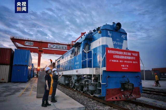 △2023年7月,粤港澳大湾区首趟“中吉乌”公铁联运国际班列正式开通。