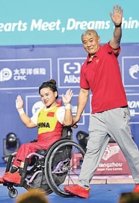 “我们原计划把最后一举的重量设置在122公斤。教练意识到我今天的比赛状态比较好,也一直在调整比赛目标,这是我们之间的默契。”第四举中,郭玲玲成功挑战了123公斤,并以该成绩刷新了亚残运会纪录、亚洲纪录和世界纪录。
