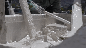 工作人员将牛奶、蜂蜜、藏红花、白灰等材料按比例混合,经过滤后对布宫墙体进行喷涂,这样既可以保护建筑物表面不受腐化变质,也可更加美观。