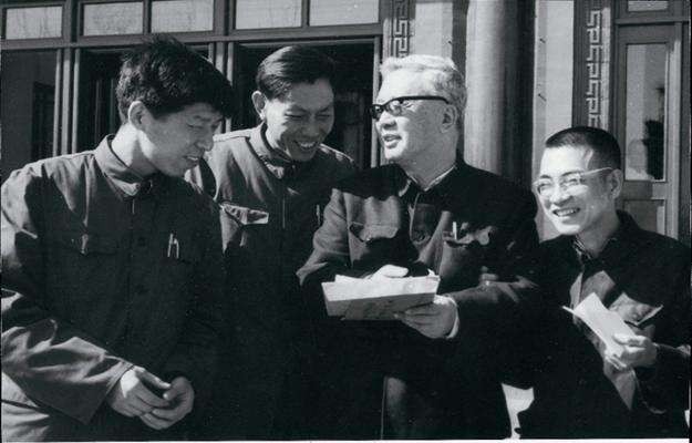 杨乐、张广厚、华罗庚、陈景润在一起研讨。中国科学院数学与系统科学研究院供图
