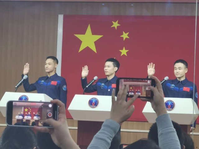 中国青年报客户端酒泉10月25日电(中青报·中青网记者 王豪 邱晨辉)今天11时,神舟十七号乘组汤洪波、唐胜杰、江新林3名航天员在酒泉卫星发射中心问天阁与中外媒体记者集体见面。这是神舟十七号航天员乘组首次集体亮相。同时,中国载人航天工程办公室发布了神舟十七号乘组简历。