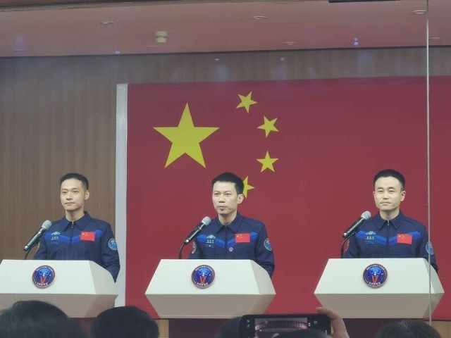 中国青年报客户端酒泉10月25日电(中青报·中青网记者 王豪 邱晨辉)今天上午,神舟十七号乘组航天员汤洪波、唐胜杰、江新林在酒泉卫星发射中心问天阁与中外媒体记者集体见面。这是神舟十七号航天员乘组首次集体亮相。