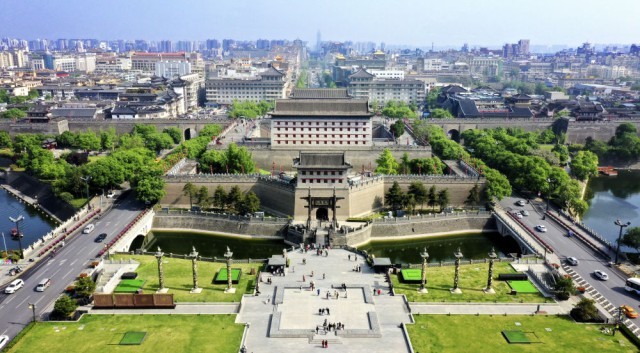 西安城墙永宁门(2023年4月25日摄,无人机照片)。新华社记者 刘潇 摄