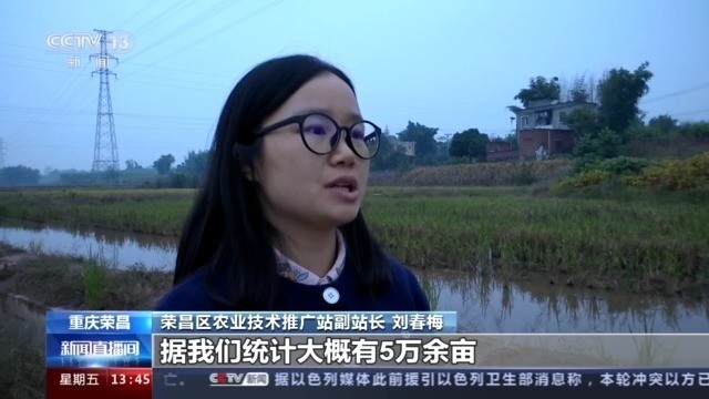 荣昌区农业技术推广站副站长 刘春梅:荣昌区的再生稻据我们统计大概有5万余亩,测算产量大概在300到500斤左右一亩。