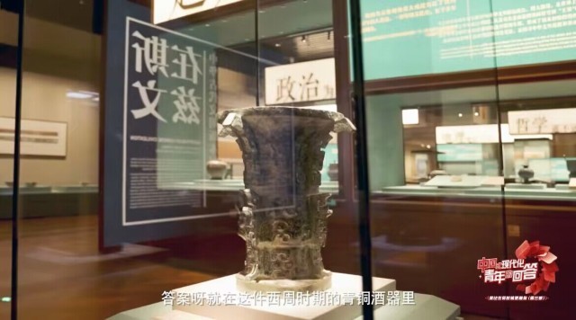 这么多藏品里,哪里能看到最早的“中国”?答案就在这件西周时期的青铜酒器上。它叫“何尊”,早在3000年前,它就有一颗“中国心”。何尊的底座刻有122个古老汉字,记录了一个小故事。