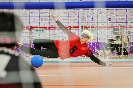 10月27日,杭州第4届亚残运会盲人门球男子组决赛,中国队9∶3战胜日本队,夺得冠军。视觉中国供图