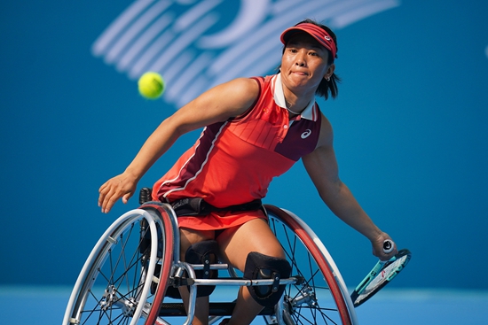 10月26日,杭州第4届亚残运会轮椅网球女子单打决赛,中国运动员朱珍珍对阵日本队上地结衣,最终朱珍珍获得银牌。视觉中国供图