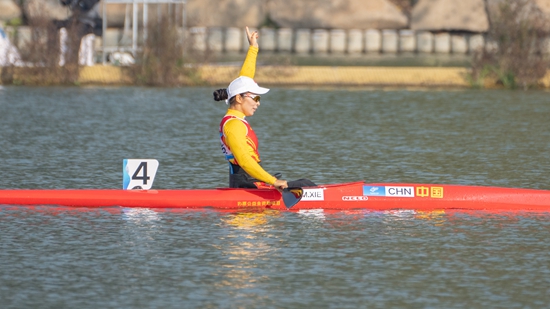 10月23日,杭州第4届亚残运会首金诞生, 中国选手谢毛三夺得皮划艇女子KL1级金牌。视觉中国供图