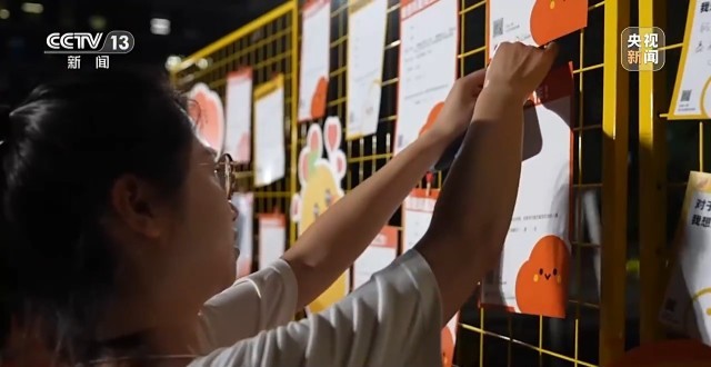 其实,他们不仅设计了这个地摊儿,还预想到可能的人流量,在其中设计了求职墙。