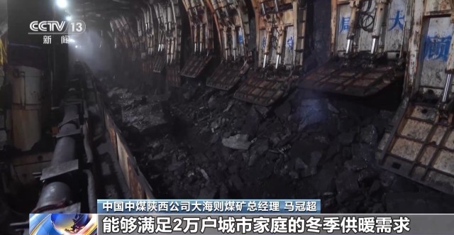 中国中煤陕西公司大海则煤矿总经理 马冠超:我们积极履行能源央企保供责任,科学组织、高效生产。目前,每天我们能够生产原煤6万吨,能够满足2万户城市家庭的冬季供暖需求。