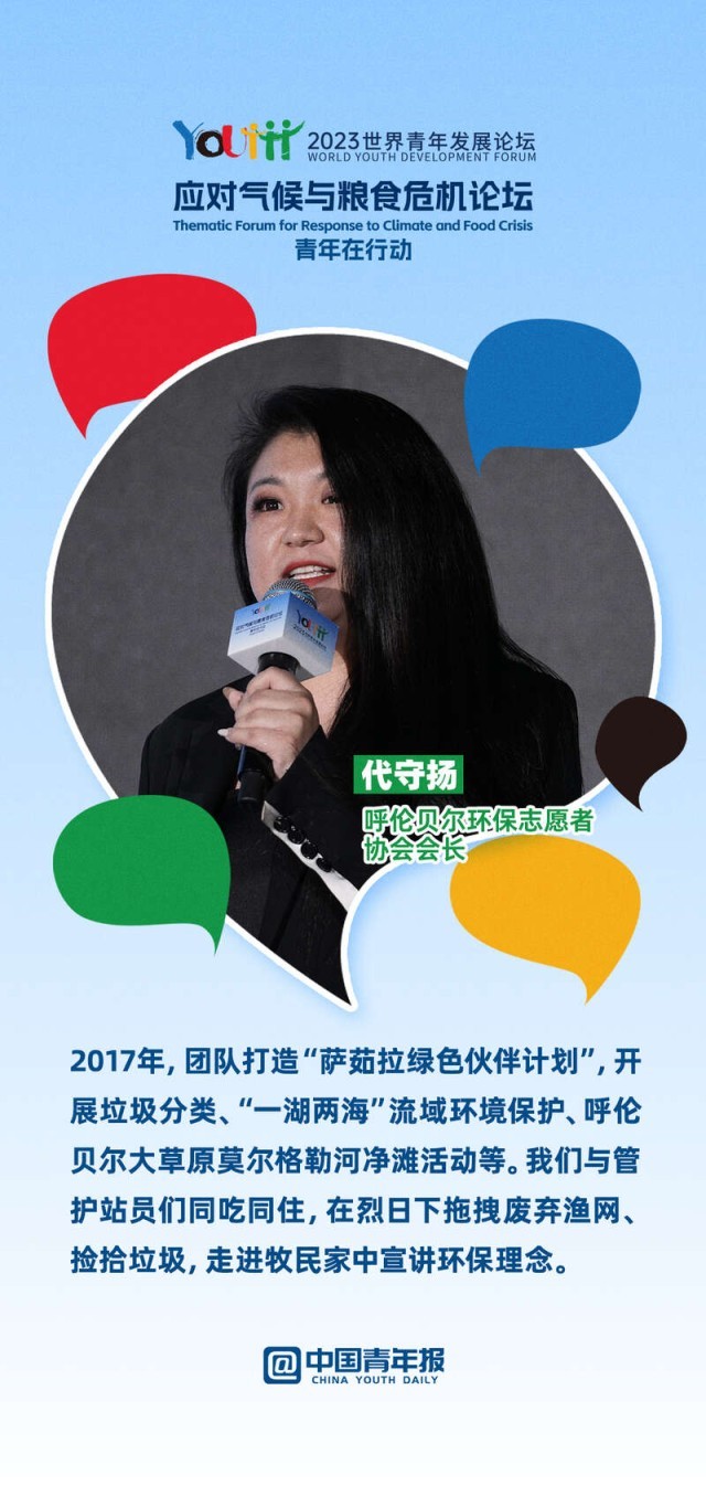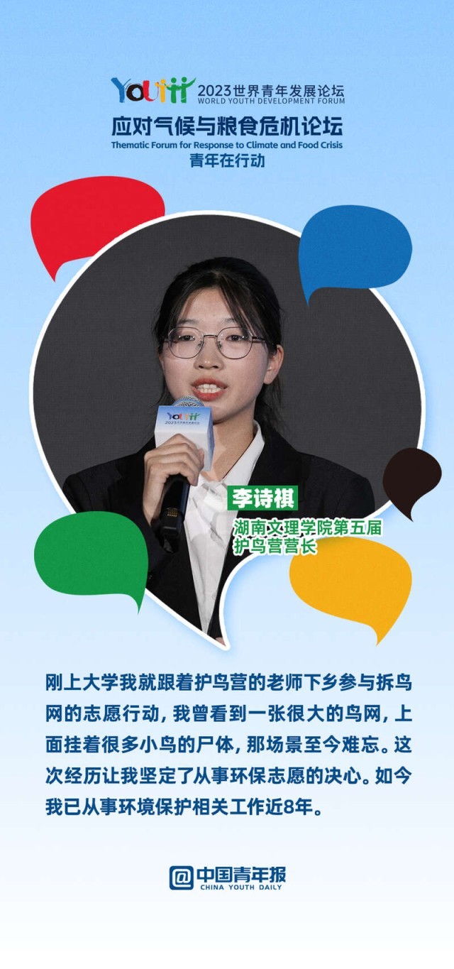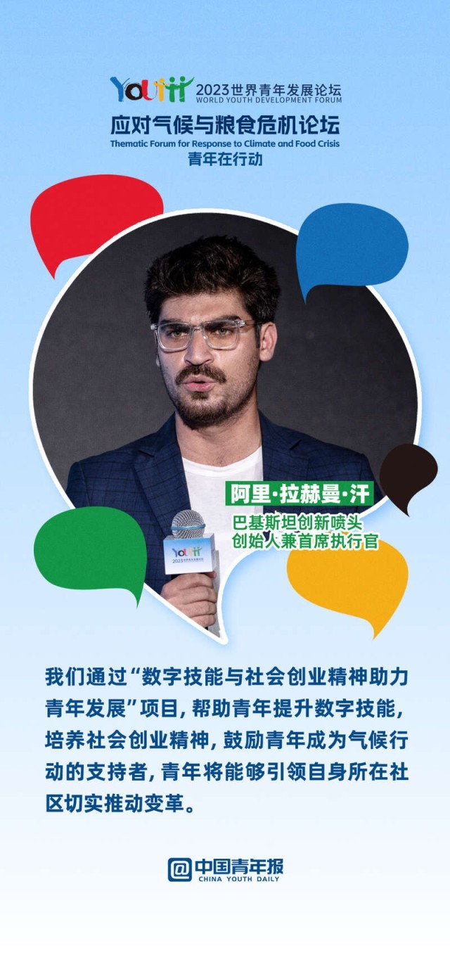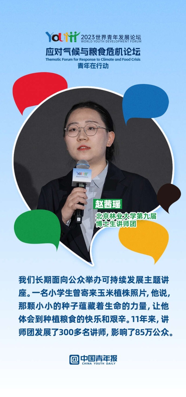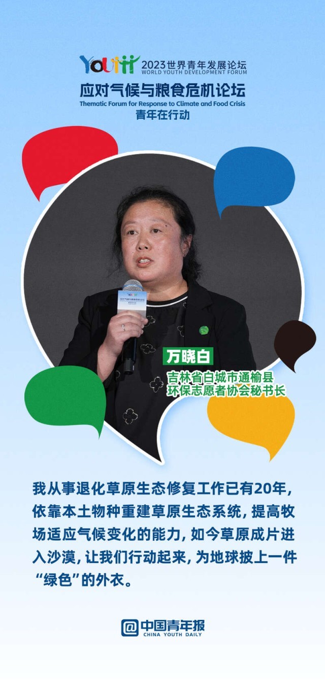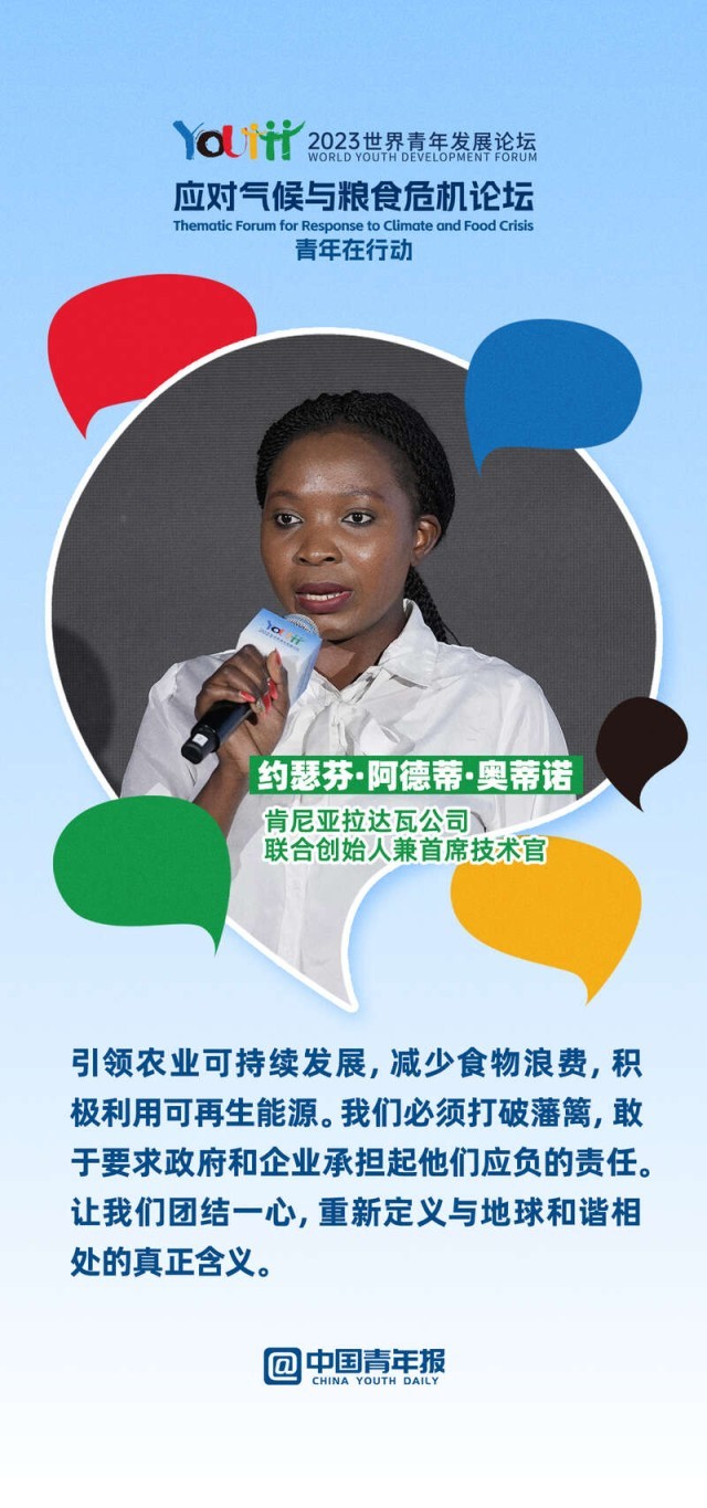 2023年世界青年发展论坛应对气候与粮食危机主题论坛上,10位中外青年分享了各自在绿色文化传播、绿色科技创新、绿色项目培育、绿色产业转化等领域的奋斗故事。面对气候变化与粮食危机,他们如何做,一起来看。