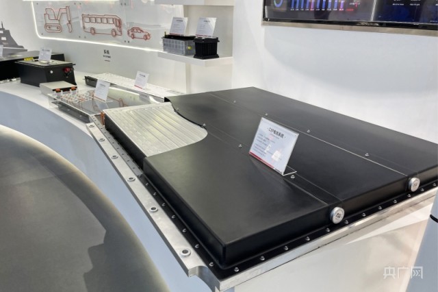 亿纬锂能展厅展示的新能源车动力电池(央广网记者 官文清 摄)