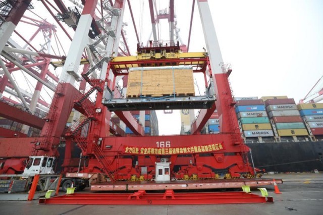 2020年10月22日,西班牙产大型龙门机床运抵上海,准备在第三届进博会上展出。 李茂君 摄