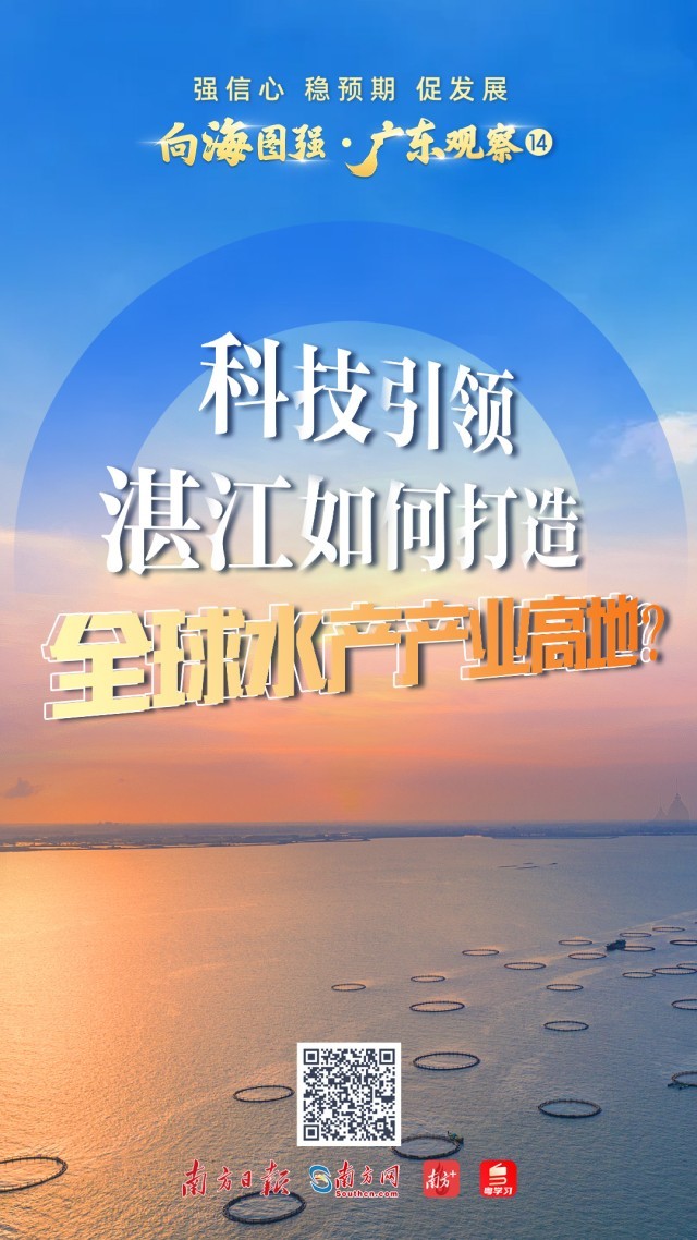 水产产业的蓬勃发展,为湛江经济社会发展注入了一针强心剂,折射出这座沿海城市高质量发展的信心。2023年1-9月,湛江经济运行恢复向好,主要指标平稳增长。眼下,湛江坚持工业化、生态化、数字化融合发展理念,以科技引领种业、养殖、装备、加工等全产业链发展,奋力打造全球水产产业高地。