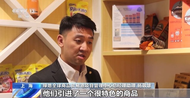 绿地全球商品贸易港项目管理中心总经理助理 杨敬雄:比如像哥伦比亚的进口馆,从去年进博会开始,他们引进了一个很特色的商品,哥伦比亚的巧克力,它的包装是完全用甘蔗的纤维来做的,可以达到百分之百可降解,这样包装的一些材料的运用是越来越贴近我们环保的理念,这样一些内容,其实在各个馆里面都有体现。
