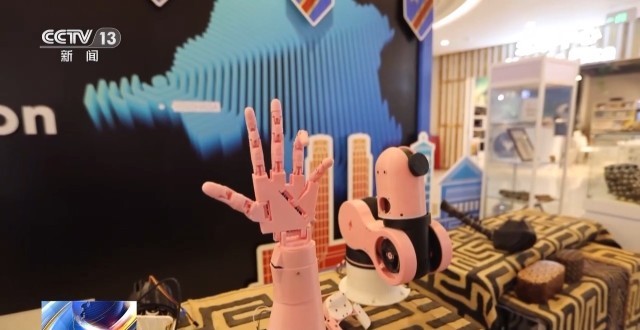 总台记者 李屹:在刚果金进口馆的柜台前,这里不仅仅有来自当地的各种手工艺品,而且,还有智能化的体现,一款可以进行AI操控的技能手臂,它的所有手指可以进行弯曲,手腕还能进行转动,而且所有动作都能进行长距离的远程控制。