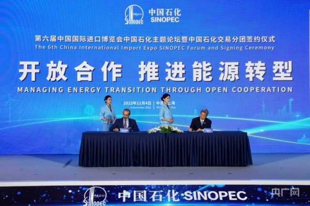 第六届进博会中国石化主题论坛暨中国石化交易分团签约上,中国石化与来自16个国家、地区的38家合作伙伴签约了采购协议(央广网发 受访者供图)