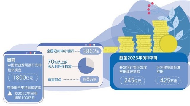 为了贯彻落实好以上通知精神,中国农业发展银行已安排1800亿元信贷资金,专项用于支持秋粮收购,较2022年同期增加100亿元,后续还将根据收购情况随时增加。“下一步,我们将继续关注金融机构对粮食领域的信贷投放情况,进一步发挥政策性金融粮食收购资金供应的主渠道作用,切实保障国家粮食安全。”韩冰说。