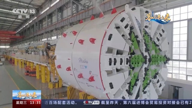总台央视记者 陈晰:盾构机又称“钢铁穿山甲”,是开挖隧道的利器。这是中国馆里展示的盾构机,这台盾构机因为施工环境处于终年降雪的高寒高海拔区域,所以它的名字叫“雪域先锋号”,这也是我国自主研发的第一台高原高寒硬岩掘进机。