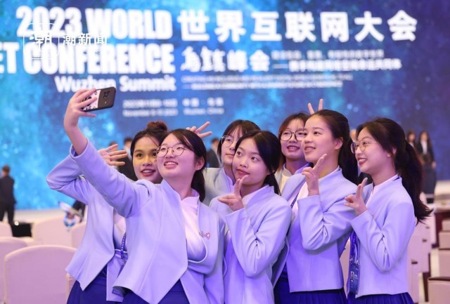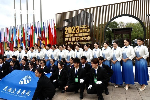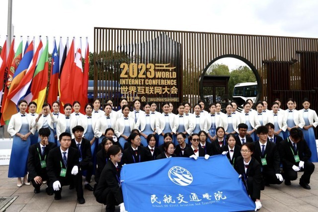 11月10日,2023世界互联网大会乌镇峰会进入尾声,在乌镇景区门口,来自民航交通学院的“小梧桐”们留下大合影,与本届乌镇峰会道别。在本次大会中,他们主要负责服务礼仪及安全检查等,为与会嘉宾提供贴心服务。