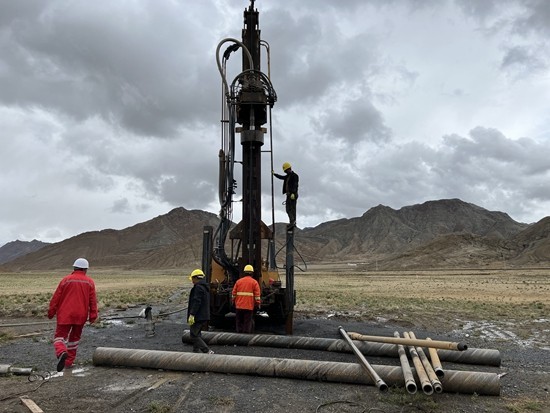望远镜项目建设人员在日喀则打井取水。中国科学院上海天文台供图