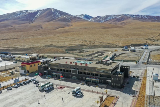 11月6日,位于新疆塔什库尔干塔吉克自治县的卡拉苏口岸(无人机照片)。新华社记者丁磊 摄