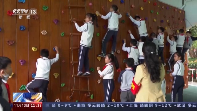 记者看到,因为面积局促,学校对所有活动空间都进行了精心规划改造。在教室里,每个班都设置了像这样的游戏角,利用飞行棋、自制古诗卡等三五分钟就能开展起来的益智类小游戏,让同学们在有限空间内放松心情;学校还专门对这个阅读空间进行了改造,增设了跳绳、乒乓球、钢琴和国际象棋等室内运动和游戏区域,在户外,则增设了器械区和攀岩墙。