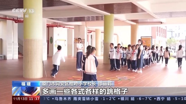 福建厦门市同安区柑岭小学校长 邵丽莉:目前我们是打算就是找学校一些适当的场所,多画一些各式各样的跳格子,让孩子来课间活动,也打算在楼梯间开辟这个益智游戏区,让孩子可以多一些选择的空间。
