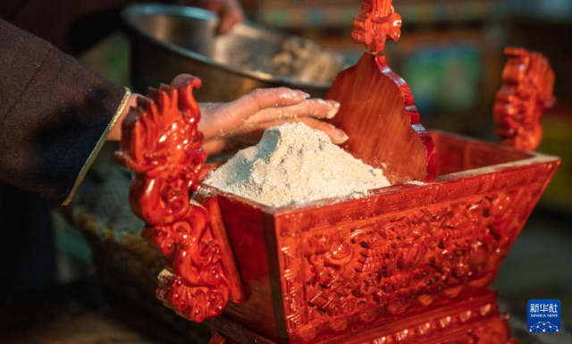工布新年的年三十,次仁顿珠(左)和拉巴卓玛在准备寓意五谷丰登的“切玛”(11月13日摄)。新华社记者 姜帆 摄