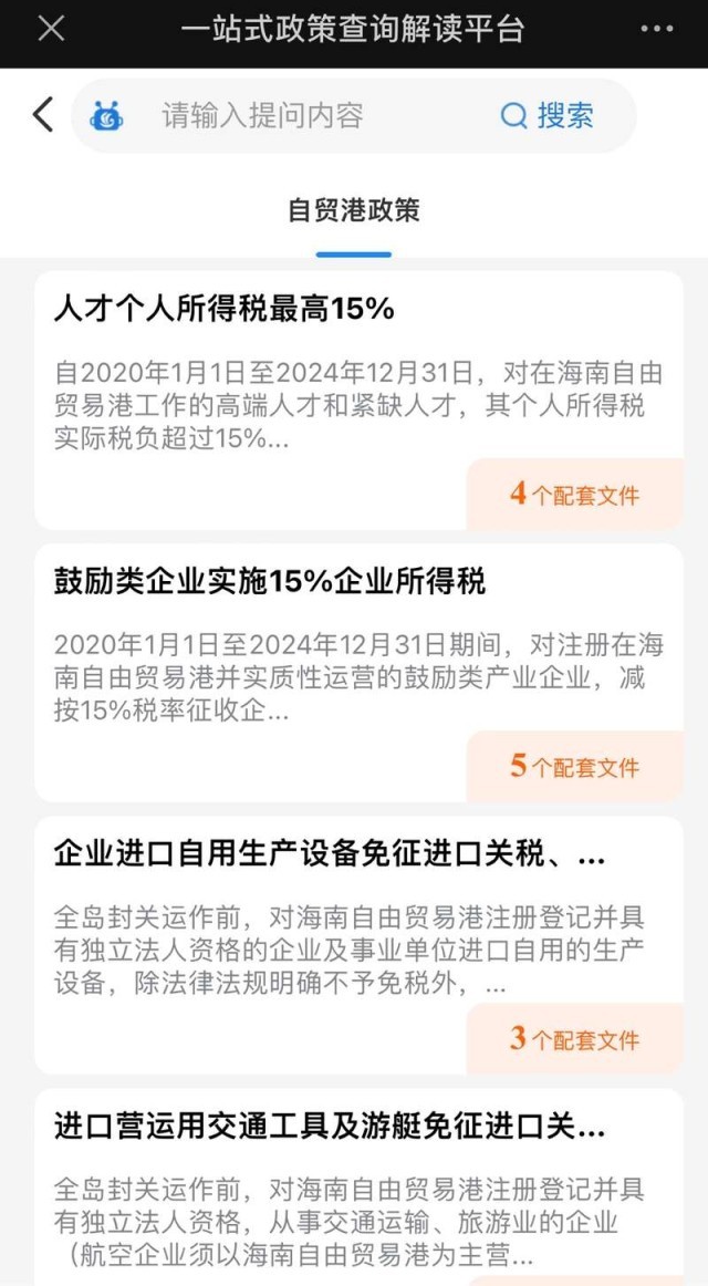中国青年报客户端讯(中青报·中青网记者 任明超 石佳)“海南自由贸易港一站式政策查询解读平台今天正式上线,可以在上面查到海南自贸港财税、贸易、投资、运输、人才等多方面政策信息。”11月15日,海南省委深改办(自贸港工委办)相关负责人向中青报·中青网记者介绍。