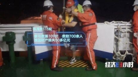 作为一艘全天候远洋救助船,它可以顶着12级的台风出海,具备空中立体救助、水上快速反应、水下深潜三位一体综合功能,已经参与过109次救援,救助过700多人,挽回财产损失50多亿元。