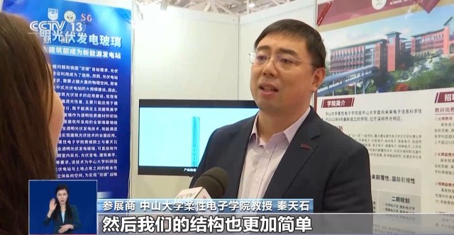 参展商 中山大学柔性电子学院教授 秦天石:跟传统的光伏比起来,我们的工艺更加简单,我们的结构也更加简单,我们的成本是非常可控的,目前在实验室我们可以实现150元每平方米的成本,当然随着我们规模不断扩大,相信这个成本可以再进一步降低。